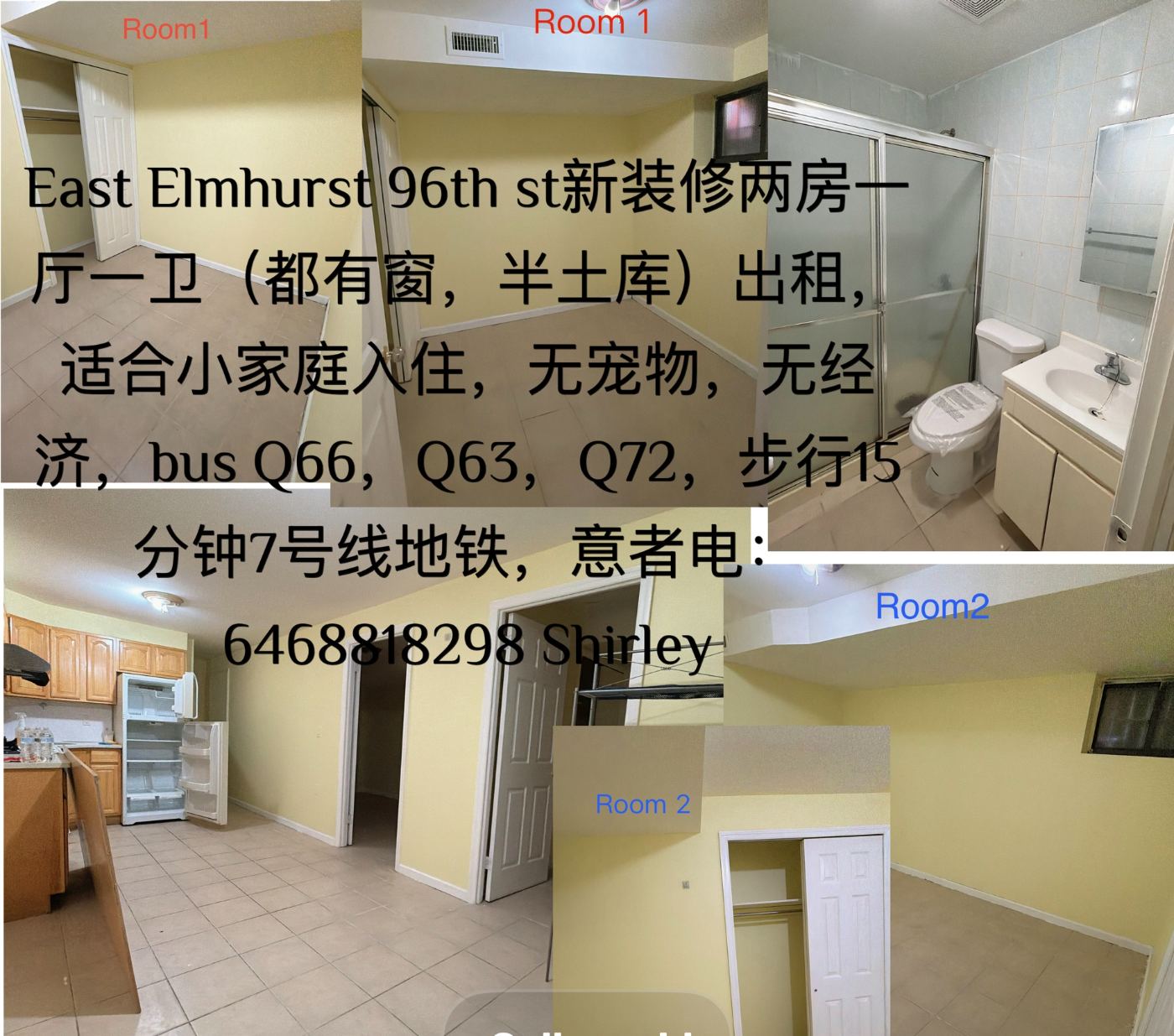 房屋概况:位于96th st,新装修的两房一厅一卫(半地下室,房间均有窗),适合小家庭。